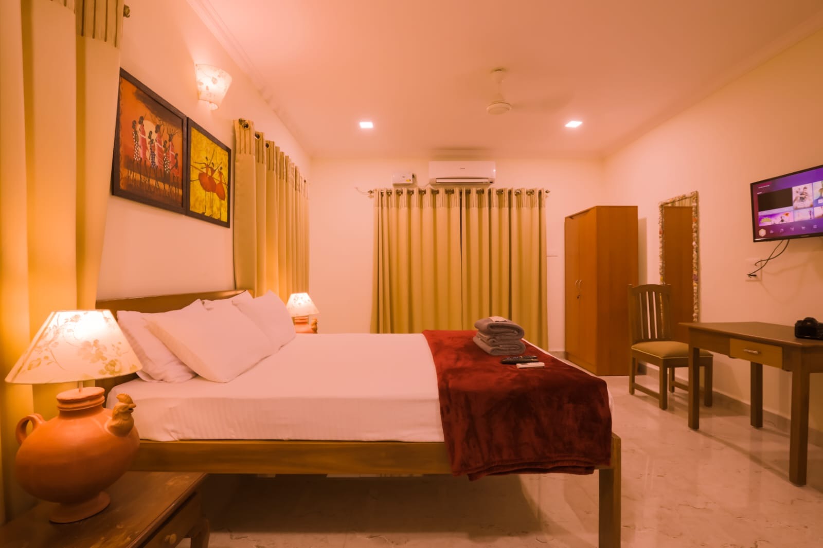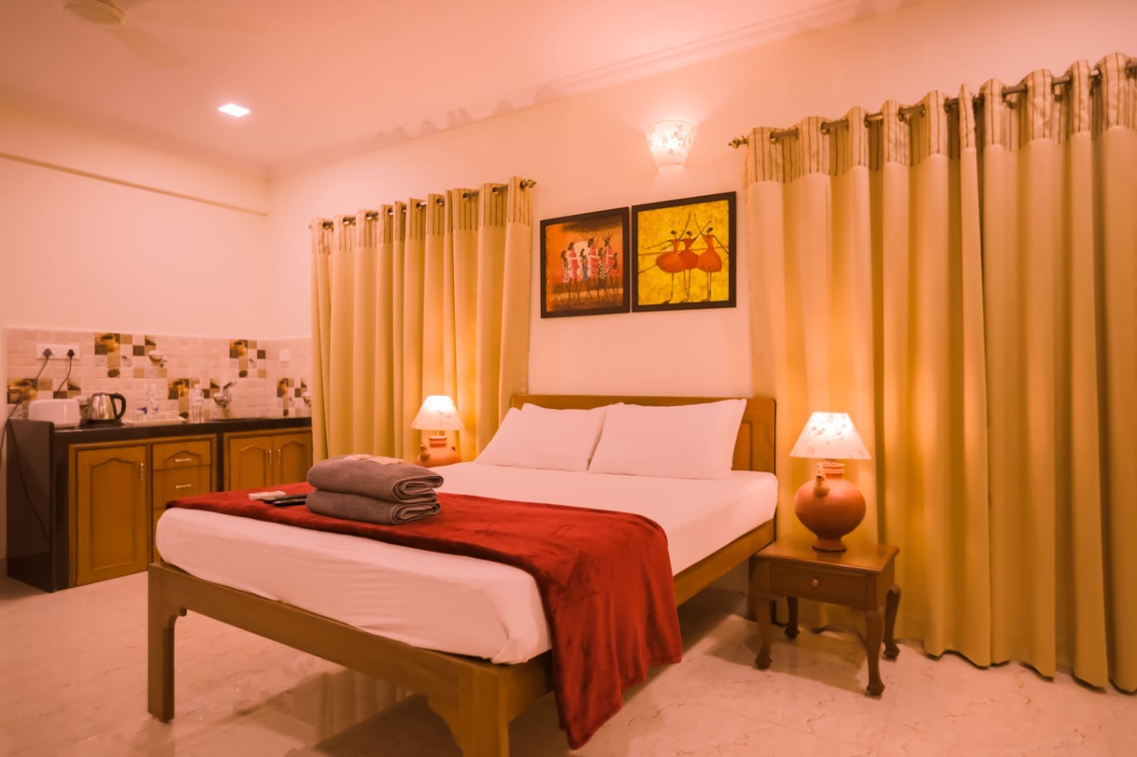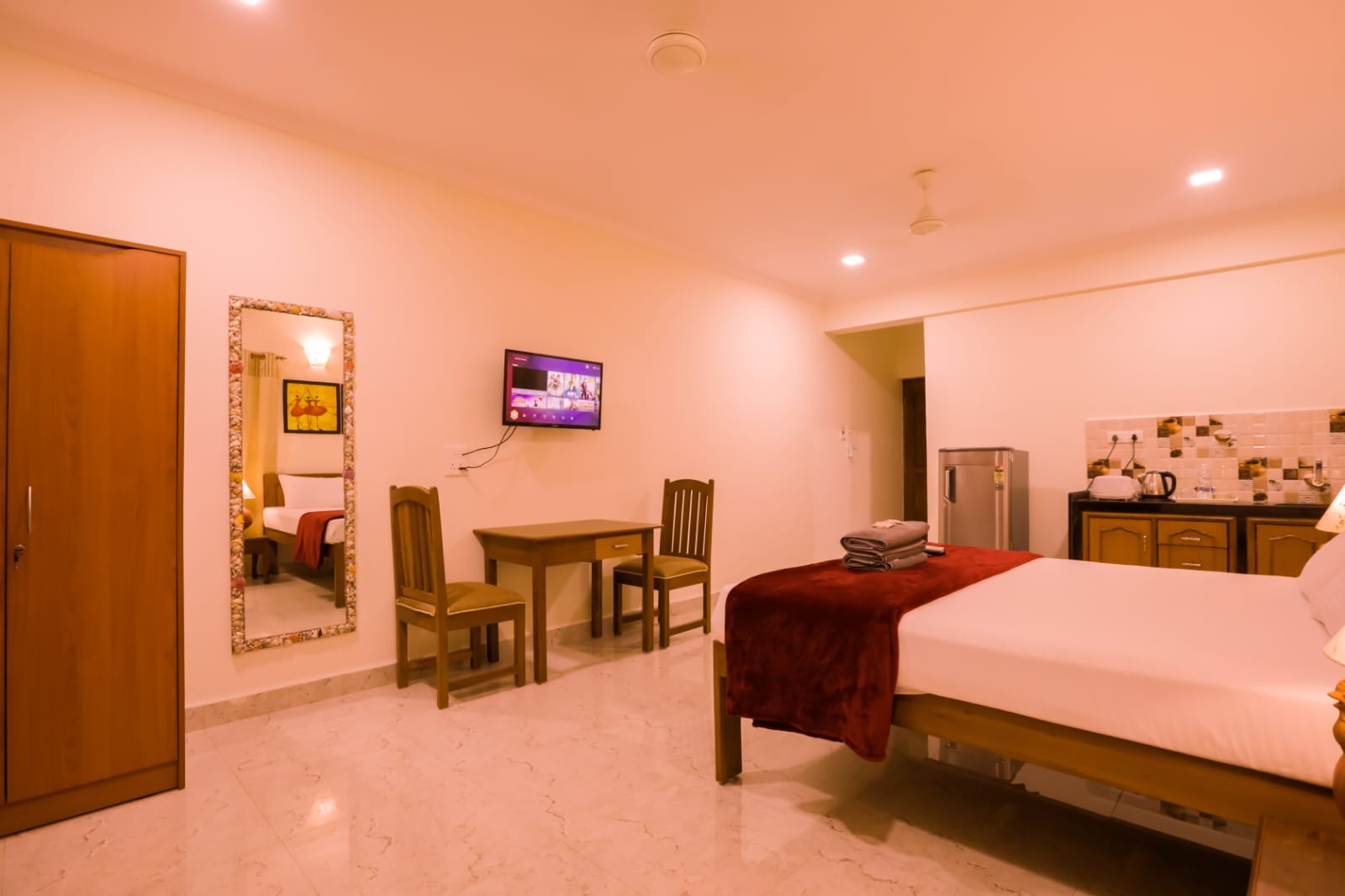 This room offers king and queen size beds with cozy mattresses and clean and tidy linen, 32″led TV, REFRIGERATOR, 1.5 ton split AC and free wifi. Each room is provided with a kettle and toaster and complimentary tea, coffee, milk powder and sugar. These rooms has its own private entrance and large clean and tidy bathroom with modern jaguar fittings.