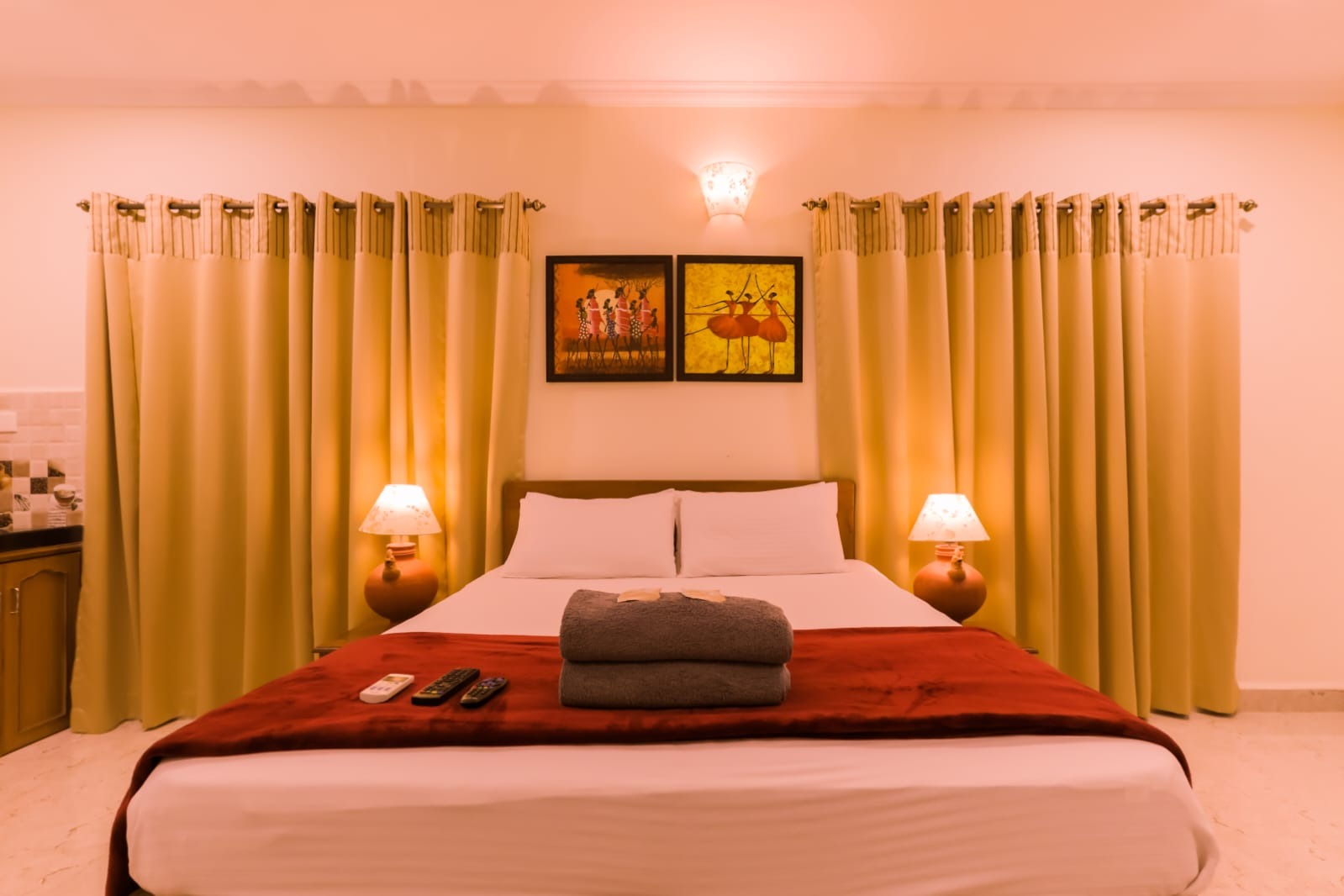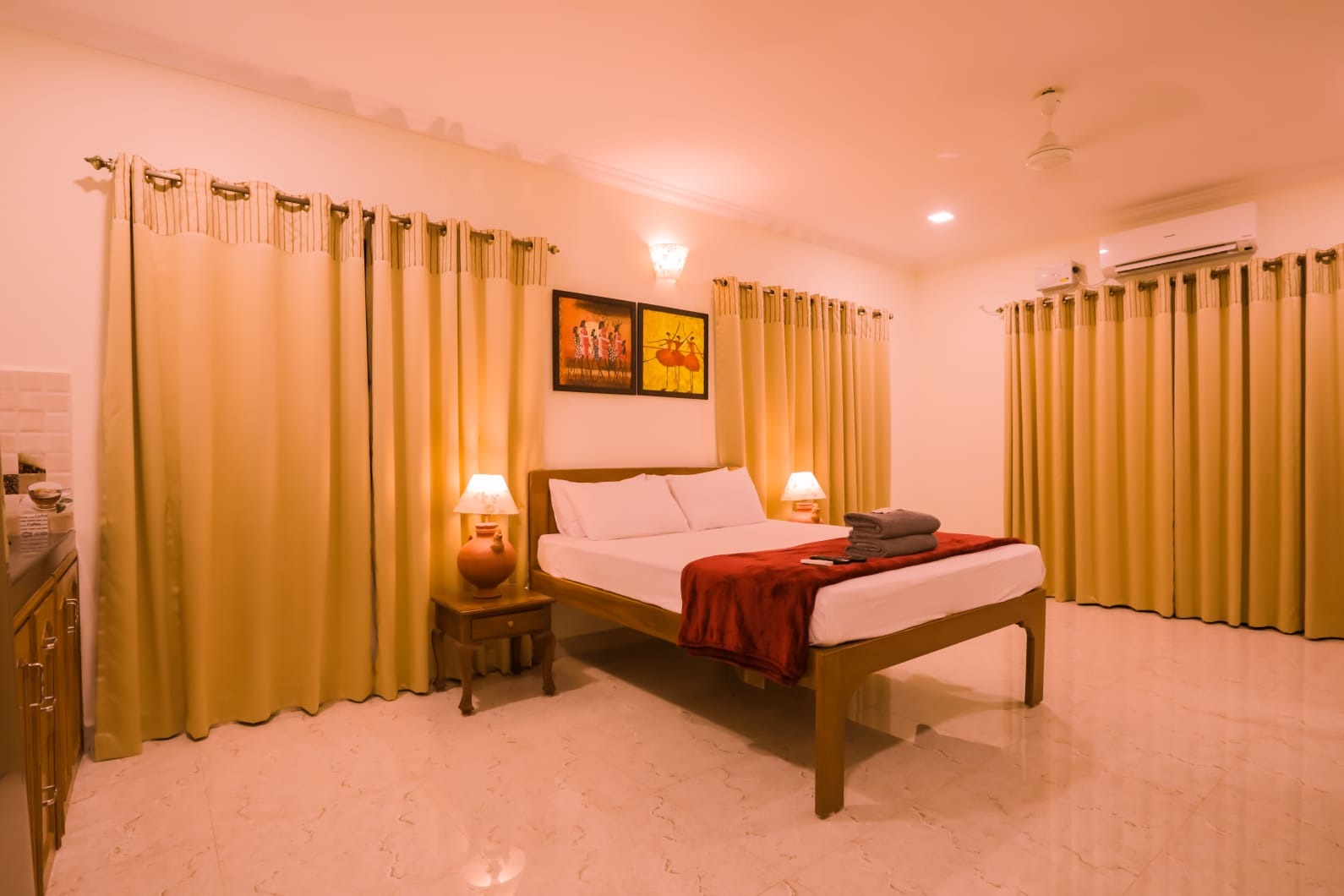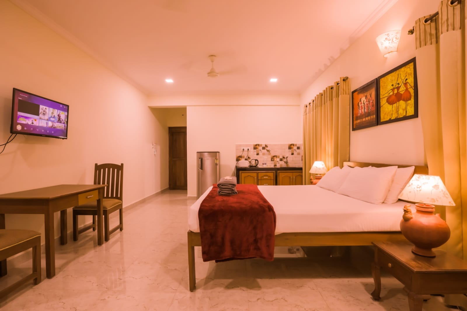 This room offers king and queen size beds with cozy mattresses and clean and tidy linen, 32″led TV, REFRIGERATOR, 1.5 ton split AC and free wifi. Each room is provided with a kettle and toaster and complimentary tea, coffee, milk powder and sugar. These rooms has its own private entrance and large clean and tidy bathroom with modern jaguar fittings.
