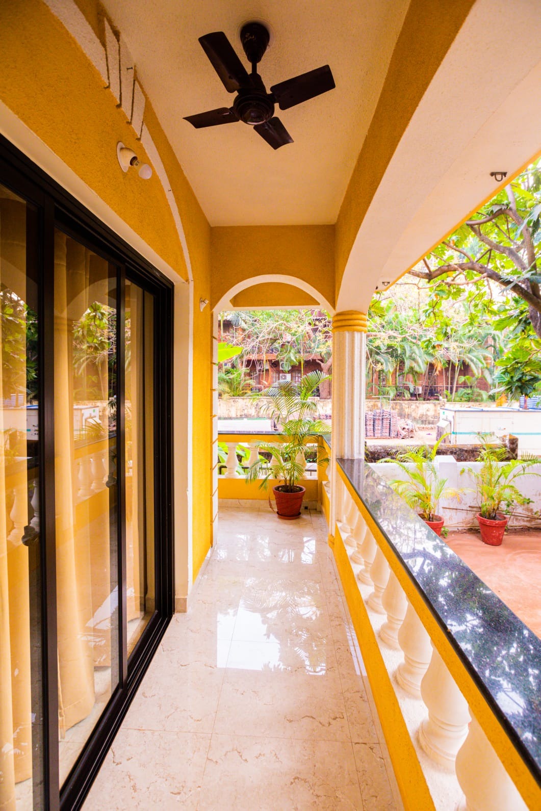 Premium Room covering an area of 516 sq. ft with large sliding glass doors with its private balcony.